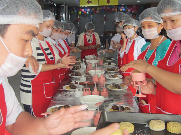 走進世博大廈服務中心,鮮花隨處可見,華美的裝修設計使人心曠神怡,現場充滿了濃郁的節(jié)日氛圍。大家熱情高漲、十分投入,和面、搟皮,包餡,然后刷上蛋液,撒上芝麻,最后烘烤出爐。員工們邊動手制作月餅邊盡情享用自己的“完美作品”,并拍照留念,記錄下了許多歡樂的瞬間。而現場專業(yè)的月餅師傅則耐心地傳授制作月餅的要領,聽得大伙頻頻點頭。另外,除了可以親手制作月餅,還可現場烘焙,讓員工們可現場品嘗至自己制作的月餅,活動現場處處洋溢著溫馨和美的氣氛……