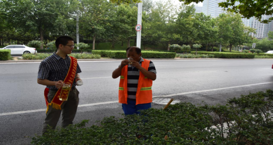 一、高溫送清涼,義務送水活動。近日,持續(xù)的高溫席卷鄭州。即使是這樣的高溫天氣,環(huán)衛(wèi)工人仍頭頂烈日,堅守在高溫一線,確保轄區(qū)內(nèi)整潔有序、干凈衛(wèi)生。7月14日上午,市建投公司黨員志愿者自備祛暑茶水,帶著水壺、水杯,慰問了酷暑中仍然堅守在一線的鄭東新區(qū)環(huán)衛(wèi)工人,為他們送上了夏季“解渴水”,感謝高溫下堅守崗位的他們?yōu)榄h(huán)衛(wèi)工作所付出的辛苦和汗水,并叮囑大家一定要加強防暑措施,注意安全。此次活動,不僅在這個夏天為一線環(huán)衛(wèi)人員送來了清涼,更彰顯了來自企業(yè)的愛心和責任。