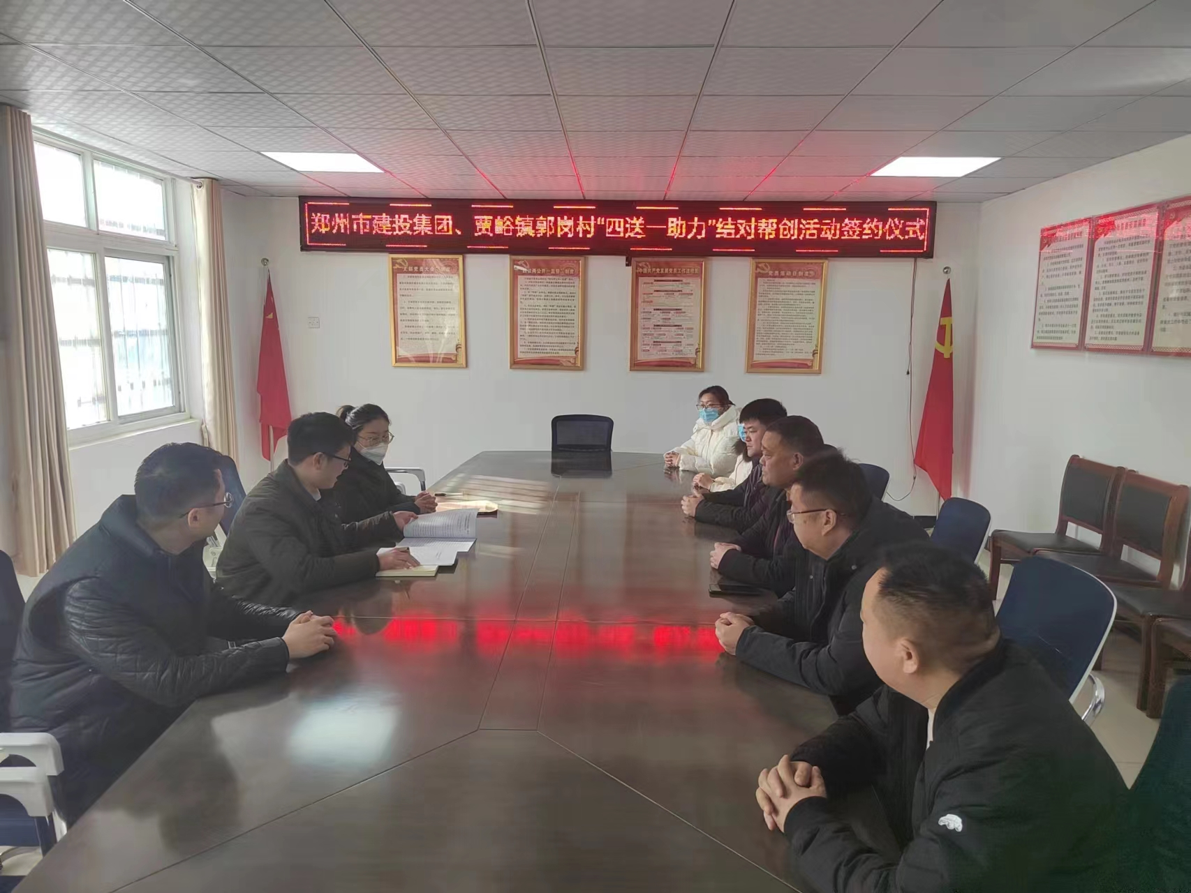 深入調(diào)研,制定幫扶內(nèi)容“聚合力”。幫創(chuàng)工作組首先與郭崗村“兩委”相關(guān)負責人、村民代表進行座談交流,村支書張建華詳細介紹了郭崗村鄉(xiāng)村振興、鞏固脫貧攻堅成果、“五星”黨支部創(chuàng)建等工作。趙少先表示,自2017年鄭州市第四輪文明單位結(jié)對幫扶開始,建投集團與郭崗村結(jié)成幫扶對子,雙方在幫扶農(nóng)村精神文明創(chuàng)建工作中結(jié)下了深厚的友誼,大家一起同心協(xié)力真抓實干,繪就了鄉(xiāng)村振興新景色。在今后的工作中,建投集團將會一如既往地做好堅強后盾,提供力所能及的幫助。隨后,雙方就本輪幫創(chuàng)工作目標、具體措施、完成時限進行了深入探討。趙少先指出,建投集團將結(jié)合郭崗村幫創(chuàng)需求,通過崇德向善、建設(shè)文化強村;情系群眾、惠民修路先行;智能安防、守護鄉(xiāng)村平安等措施助力鄉(xiāng)村振興,同時常態(tài)化開展好“送政策、送文化、送健康、送溫暖”等志愿服務(wù)活動,預(yù)計3年共提供幫扶資金15萬元,將“四送一助力”結(jié)對幫創(chuàng)工作做實做細。最后,雙方共同簽署了《鄭州市各級文明單位“四送一助力”結(jié)對幫創(chuàng)活動協(xié)議書》,正式建立幫創(chuàng)關(guān)系。
