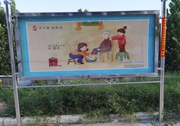 四、設(shè)置宣傳載體,營造文明家園濃郁氛圍。今年,集團(tuán)公司為郭崗村提供3萬余元幫扶資金幫助其打造了精神文明專欄,分為家風(fēng)家訓(xùn)(名人家風(fēng))專欄,“講文明 樹新風(fēng)”(孝當(dāng)先、傳承家風(fēng))、“文明健康 有你有我”公益廣告等內(nèi)容,使社會(huì)主義核心價(jià)值觀深刻融入到村民的生產(chǎn)生活和精神世界,形成全體村民的修身行善共識(shí)和明禮守法自覺,為促進(jìn)郭崗村經(jīng)濟(jì)健康發(fā)展、構(gòu)建美麗鄉(xiāng)村、文明家園打下良好根基。